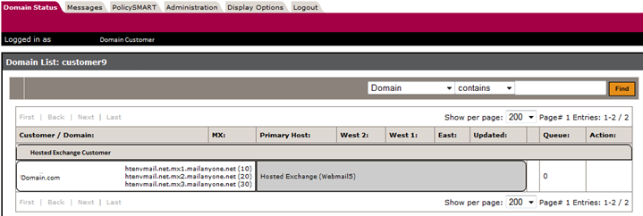 Click on the domain to view settings & users for the domain.