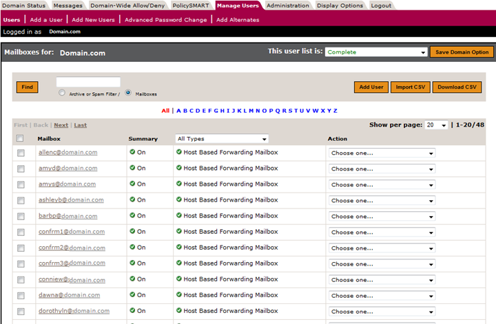 After clicking on the domain you will see the following, from here you can add/remove you user accounts.