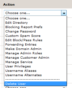 Then click on the Action drop down list, and select delete user.